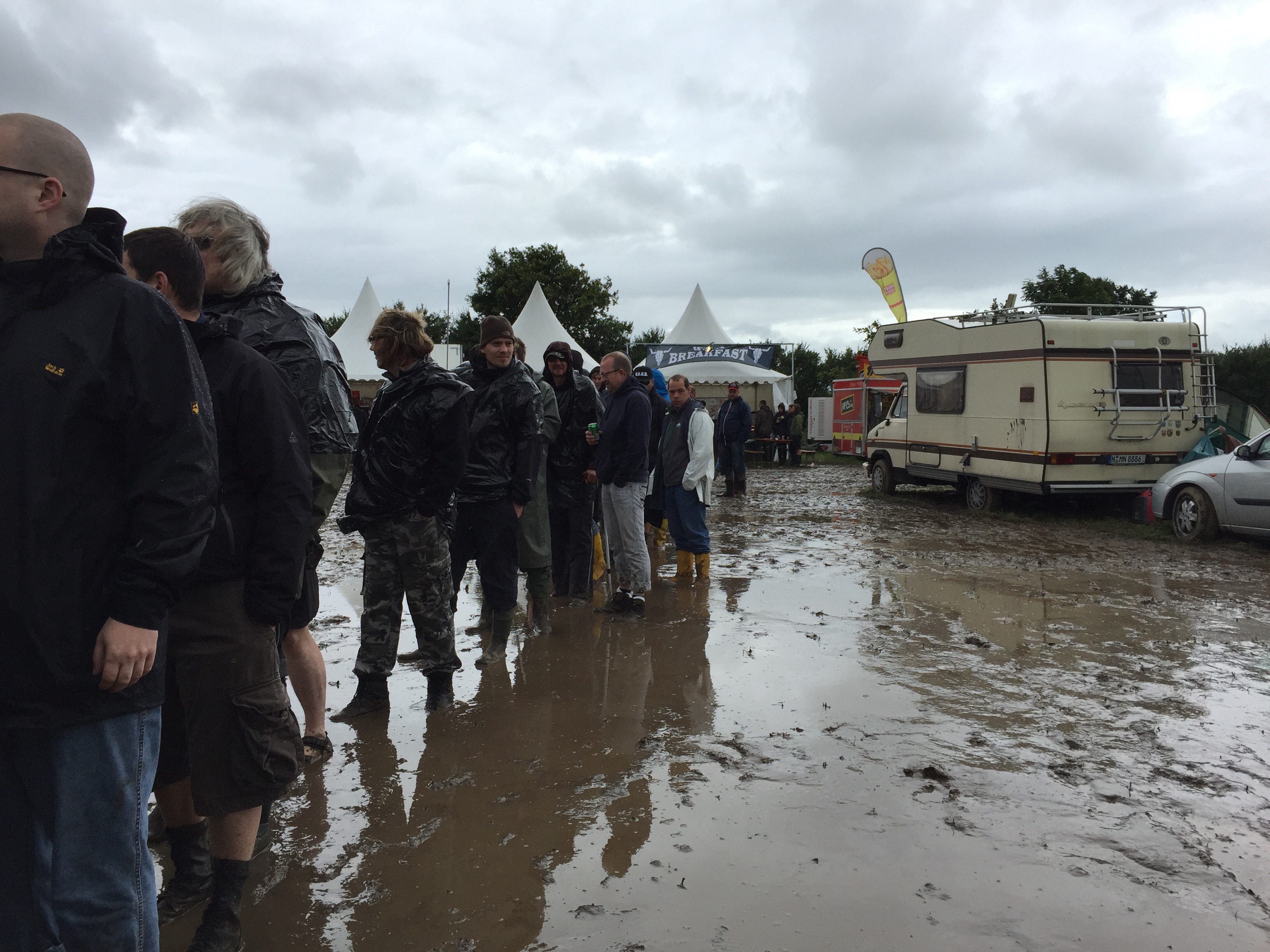 Es hat mal kurz aufgehört zu regnen und die meisten haben die Gelegenheit genutzt um die Spülklos auf zusuchen. Die Dixies sind voll und der Klowagen kommt nicht mehr durch die Wege.