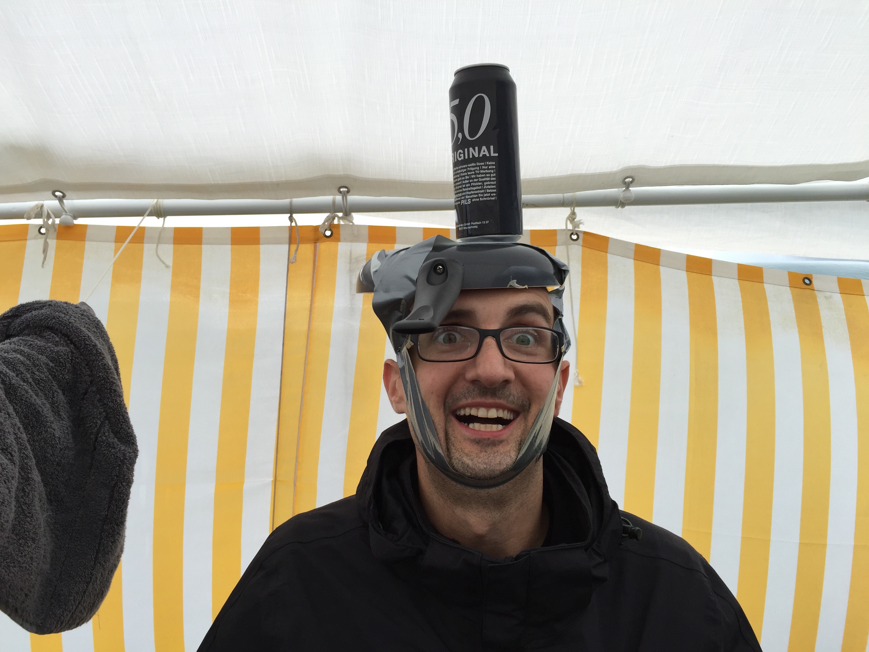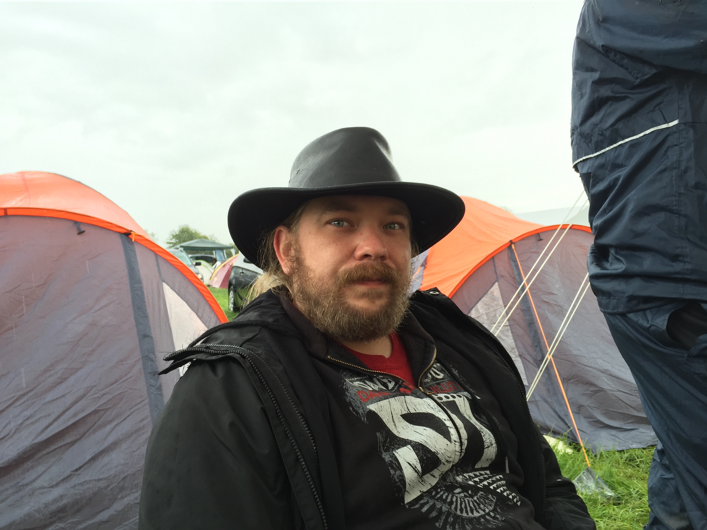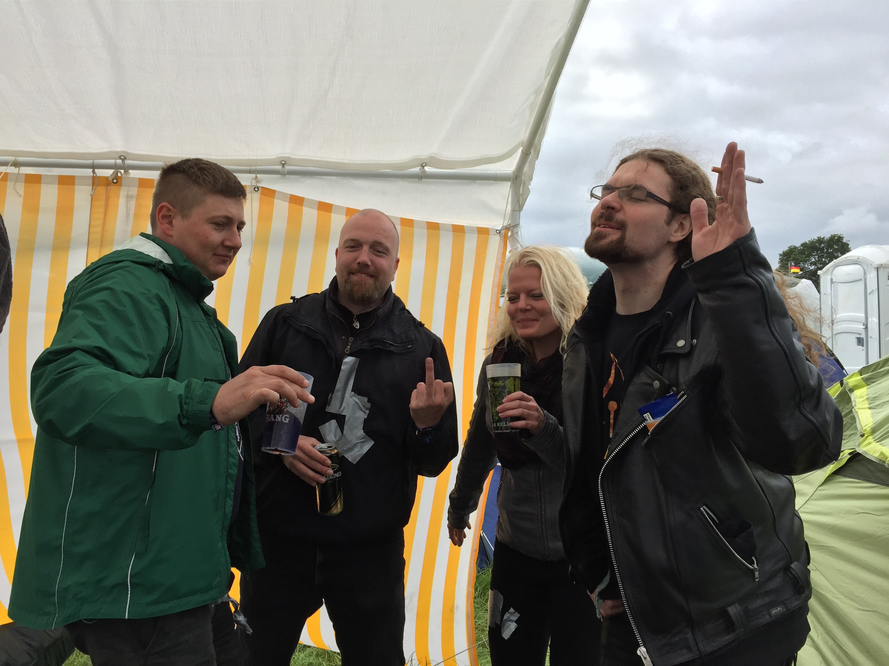 Die Stimmung hat sich gegeben. Zuerst war sie doch sehr zerschmetternt, da es nur geregnet hat, mittlerweile kommt zwischen durch mal die Sonne raus. Wie ich ja schon bereits sagte werden wir heute nicht mehr das Infield sehen aber Musik haben wir natürlich trotzdem hier und auch genug Bier.