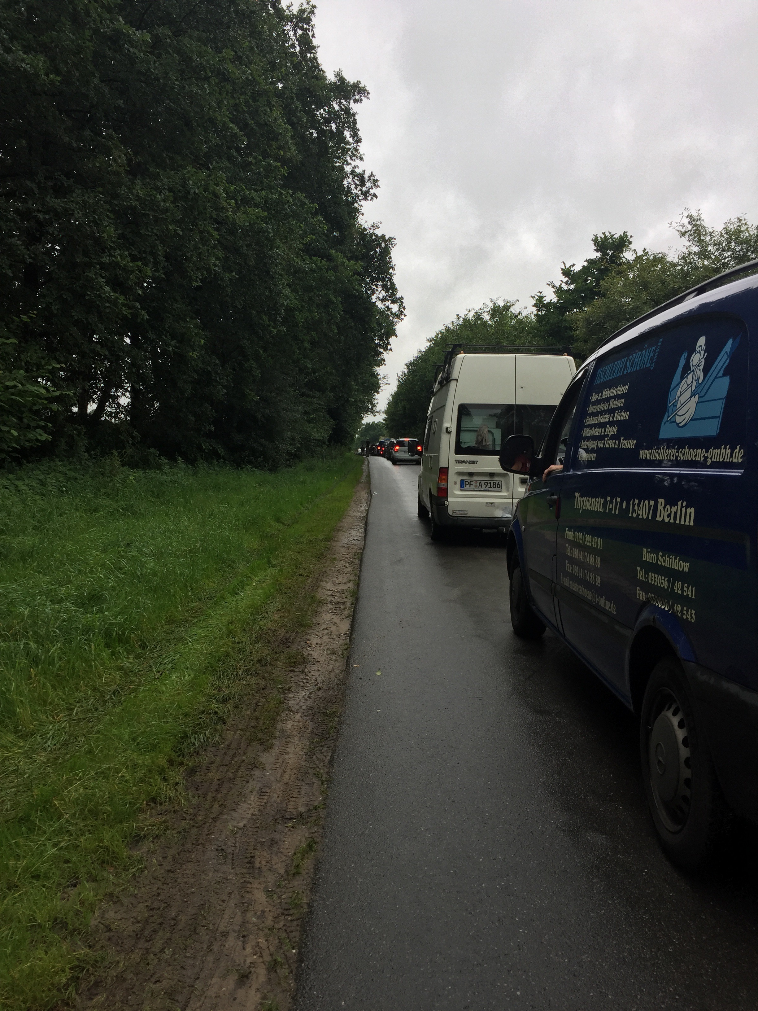 Mit 90 auf der Autobahn ist zwar sehr gemütlich aber mit sovielen Autos ist das besser so. Nicht mehr lange und wir sind da. Gute Stimmung haben wir schon, jetzt fehlt nur noch gutes Wetter. Auf der Wackenpage stand was von Wolkig und etwas Sonne. Mit leichten Schauern ist wohl auch zu rechnen aber das ist alles noch im Rahmen.